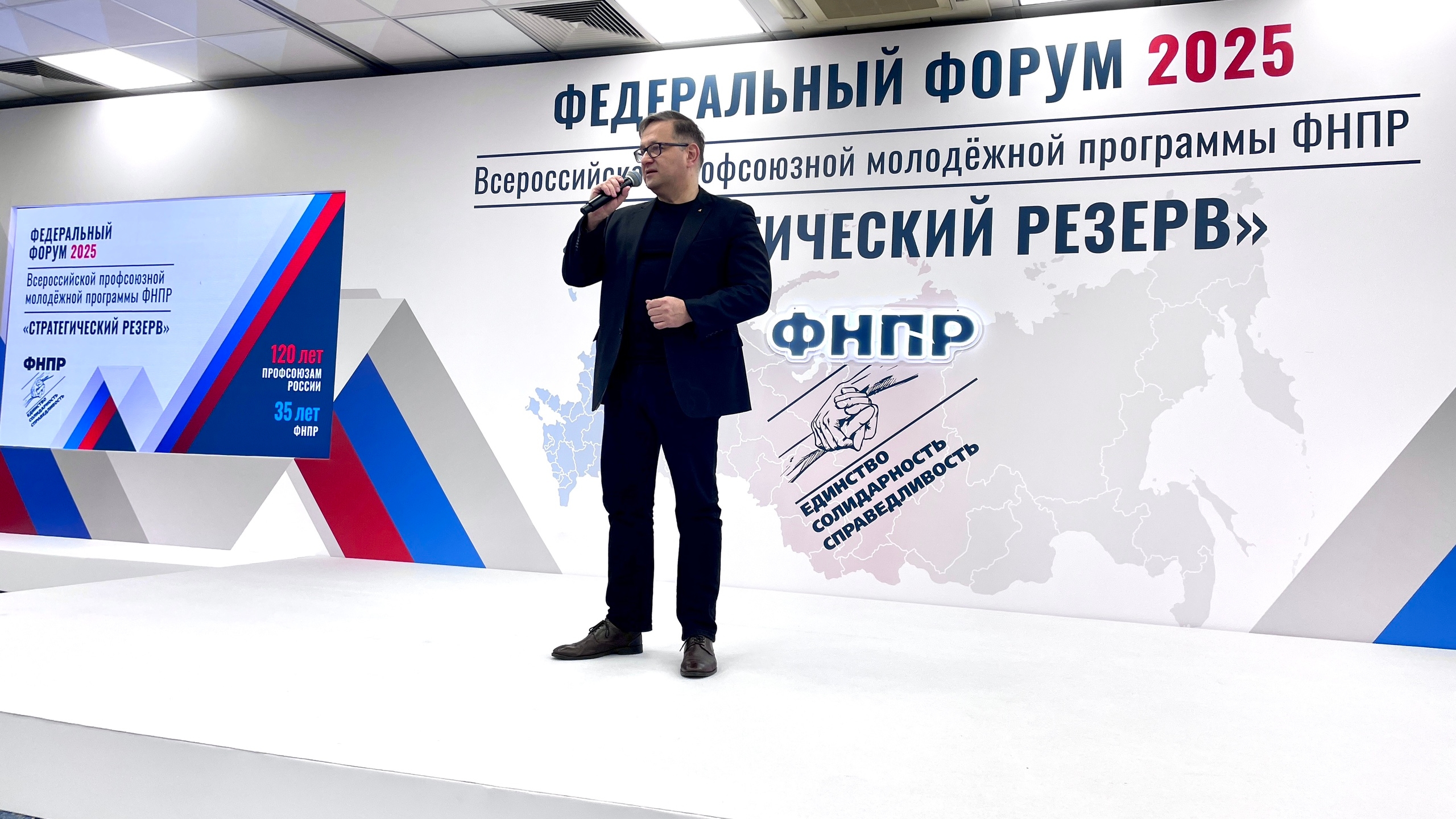 На форум в Москве собрались более 240 человек - молодых профактивистов из разных регионов России. В рамках форума прошел конкурс "Молодой профсоюзный лидер России-2025", в котором участвовали победители 8 окружных и 4 отраслевых конкурсов. Первыми спикерами стали люди, чей опыт для профдвижения значим и необходим: Татьяна Водопьянова, полпред председателя ФНПР в ЦФО и Александр Шершуков, заместитель председателя ФНПР, главный редактор газеты «Солидарность».