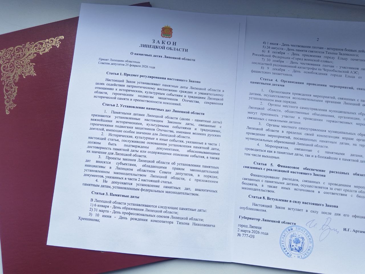 На 57 сессии VII созыва Липецкого областного Совета депутатов единогласно принят закон «О памятных датах Липецкой области» №777-оз. В него вошел День профессиональных союзов Липецкой области, который теперь будет отмечаться 31 марта.