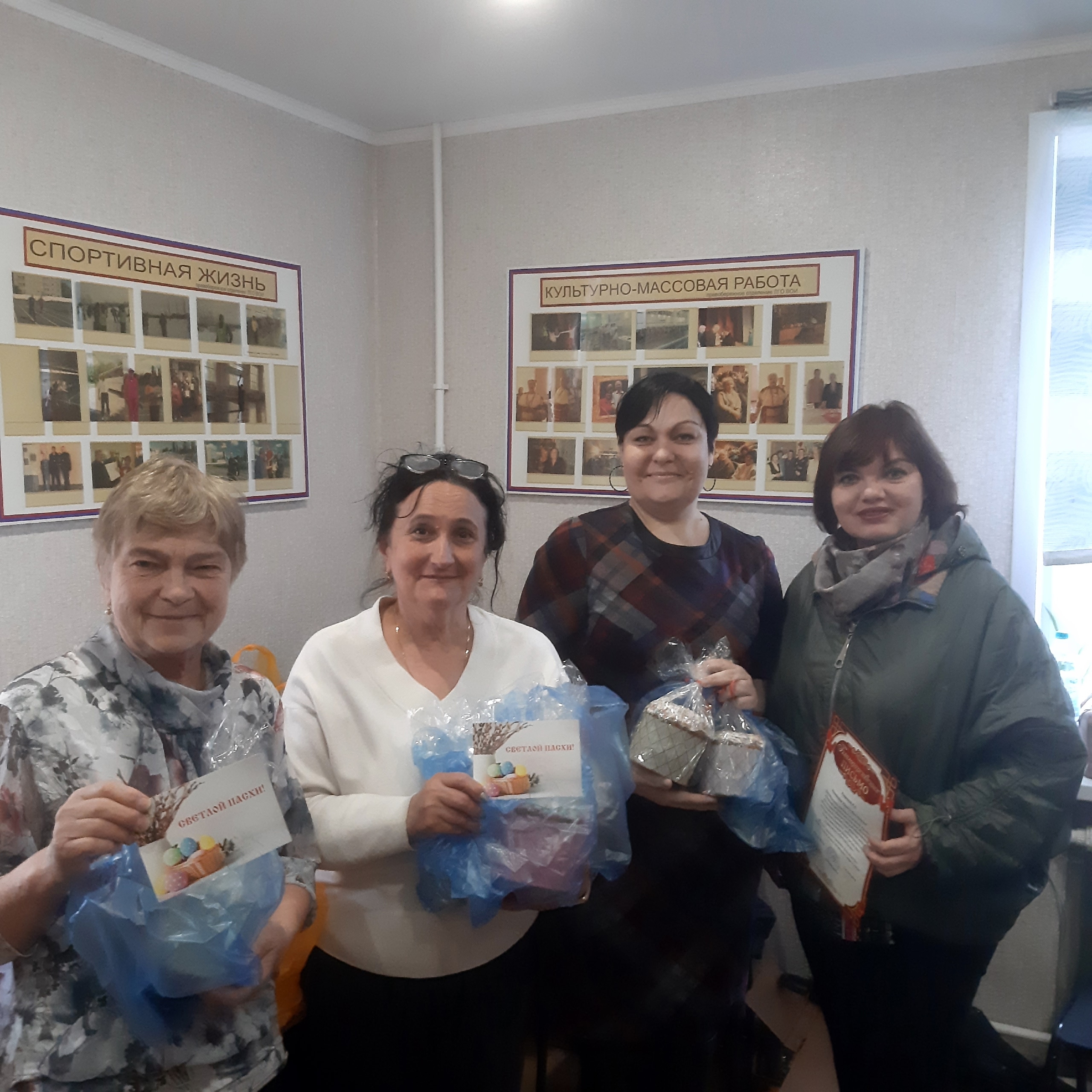 Председатель Федерации профсоюзов Липецкой области, член «Клуба городского жителя» Лариса Кудаева передала пасхальные куличи членам Правобережного районного отделения Всероссийского общества инвалидов г. Липецка.